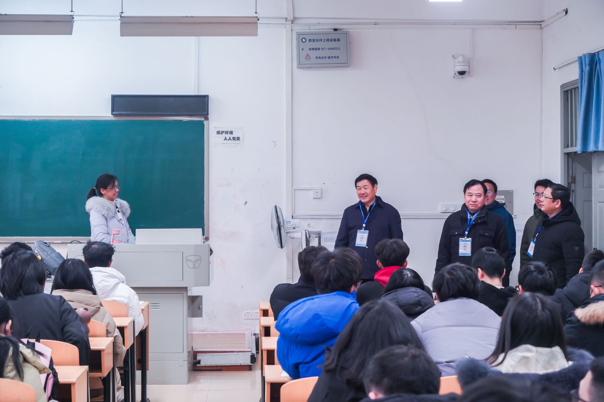 2月26日,春季学期开学第一天。Beat365中文官方网站党委书记徐雁冰、校长倪红卫等全体校领导深入教学一线,检查新学期开学第一课的教学情况,实地走访青山校区、黄家湖校区全部教学场所,巡课、看课、查课,督查教风、学风建设,指导新学期第一天教学情况,就教师到岗及授课情况、学生上课出勤情况、师生课堂精神面貌、课堂秩序、教学设施和后勤服务保障、校园安全等情况进行了全面认真的巡视检查。