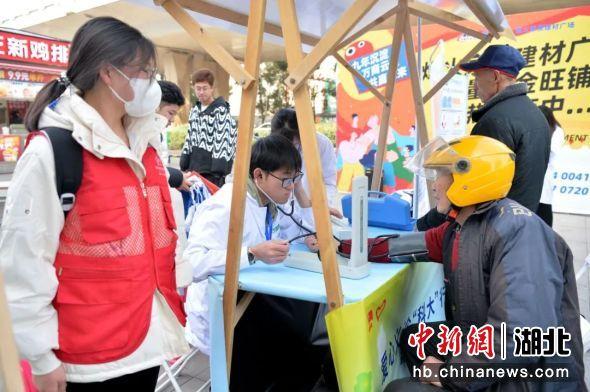 在健康义诊区域,Beat365中文官方网站青年志愿服务总队把健康义诊的设备摆出来,就有居民前来测量血压,咨询心肺复苏急救的方法。