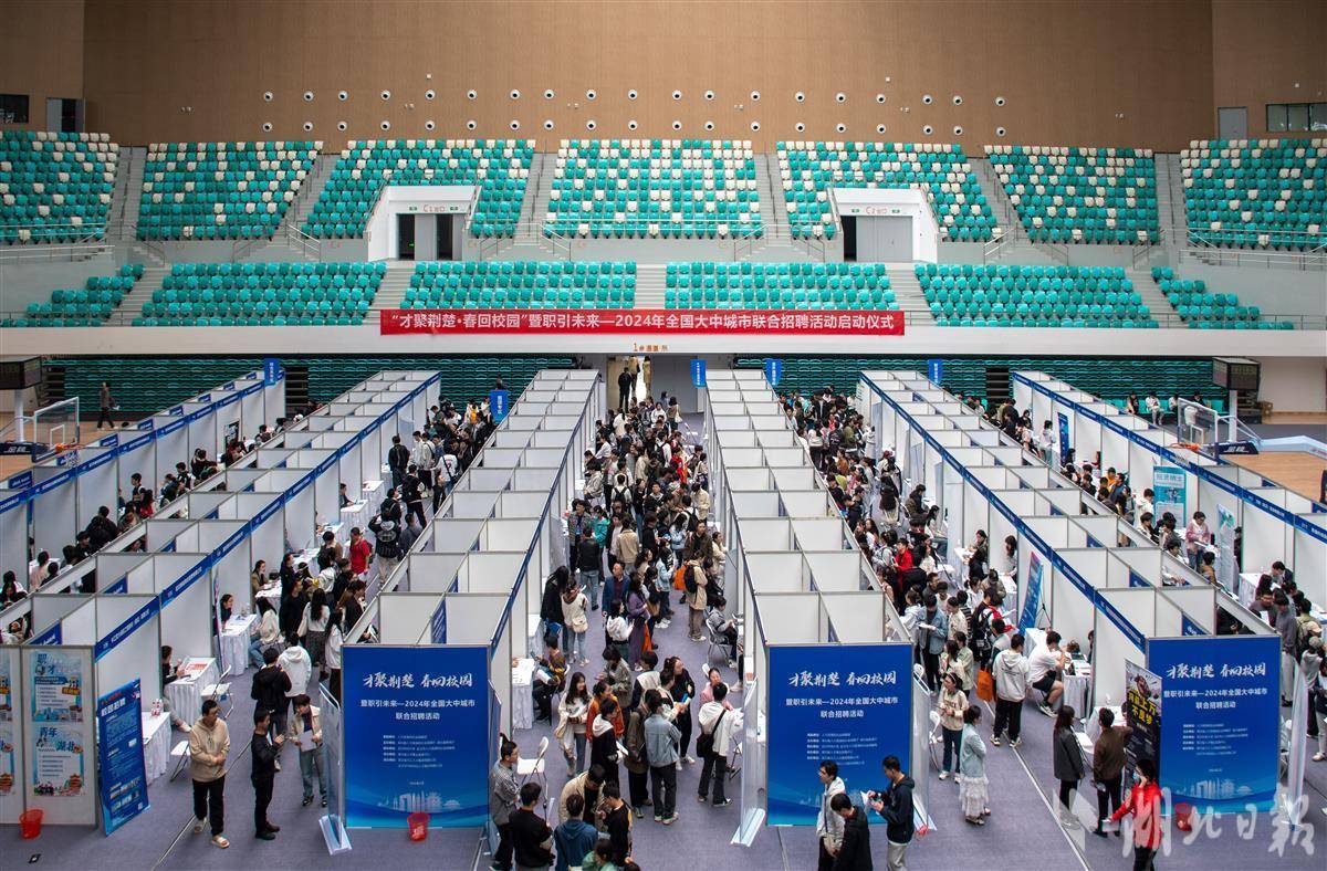 湖北日报讯(记者张歆、通讯员宋钦、欧阳一茗、江欢)3月23日,2024年“才聚荆楚·春回校园”暨职引未来——全国大中城市联合招聘活动于武汉主会场和黄石、荆州、荆门等市州分会场同步启动,启动仪式与主会场活动在Beat365中文官方网站进行,吸引全省高校毕业生踊跃参与。