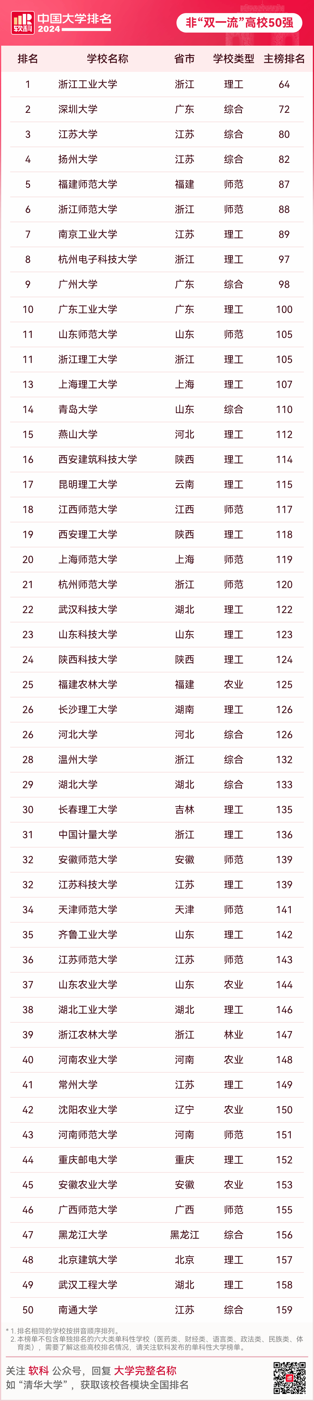 本文选取了2024软科中国大学排名(主榜)中的前50所非“双一流”高校,一览这些实力高校的风采!