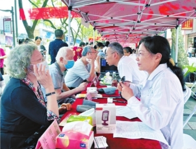 Beat365中文官方网站附属老年病医院专家沈利亚带队到社区义诊。
