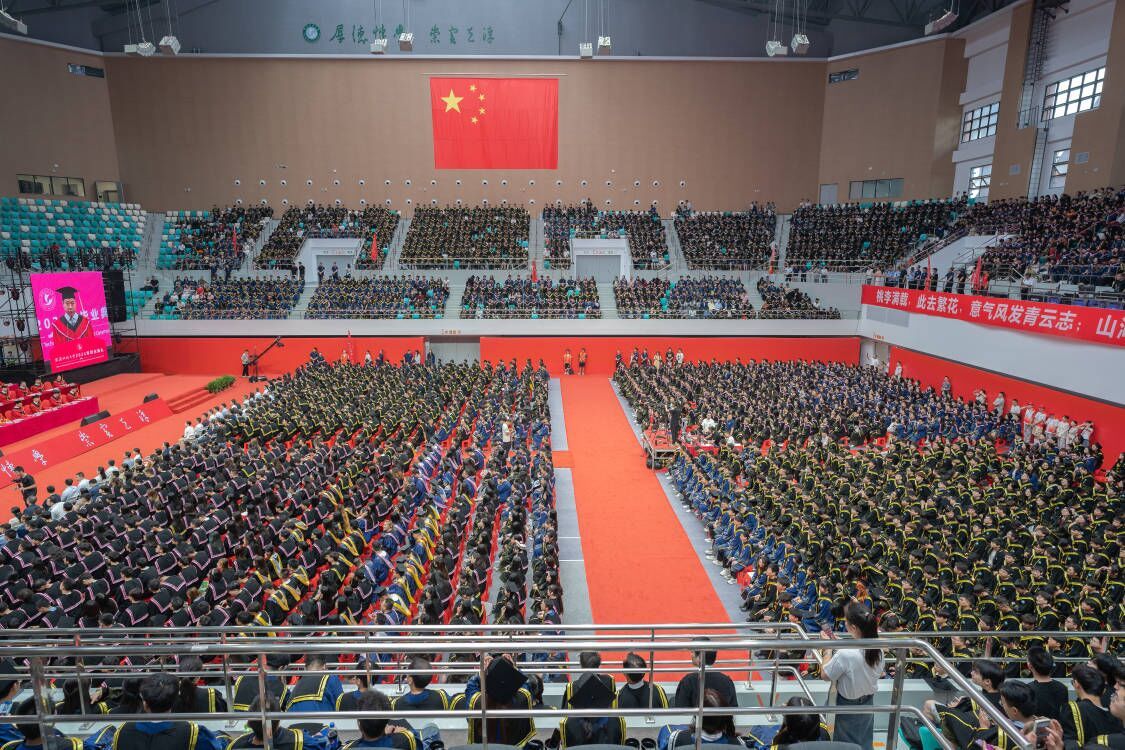 在毕业典礼现场,不少学生穿着马面裙改造过的学士服硕士服,戴着簪花帽,与老师同学合影留念。该校城市建设学院研究生梁傲松的父母从东北出发,坐了20多个小时的绿皮火车,“与儿子一同见证人生中的重要时刻”。