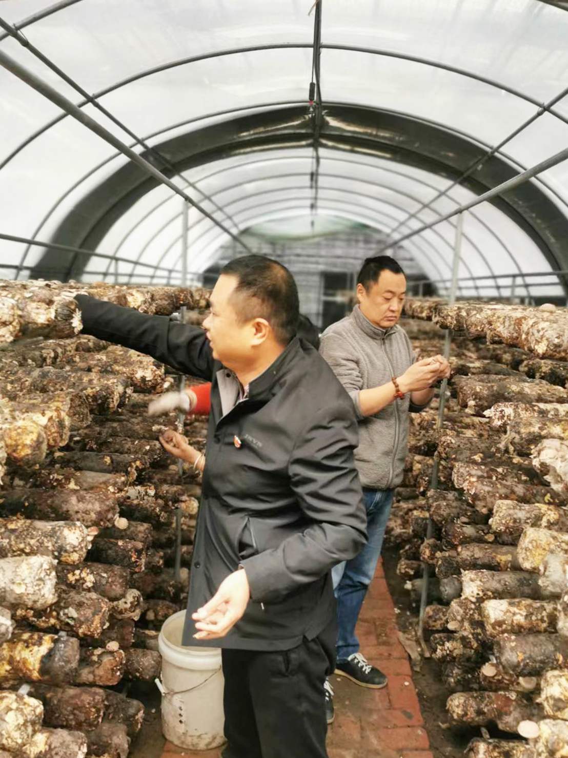 2019年,钱建东(左)帮助石庙子村搞多种经营。