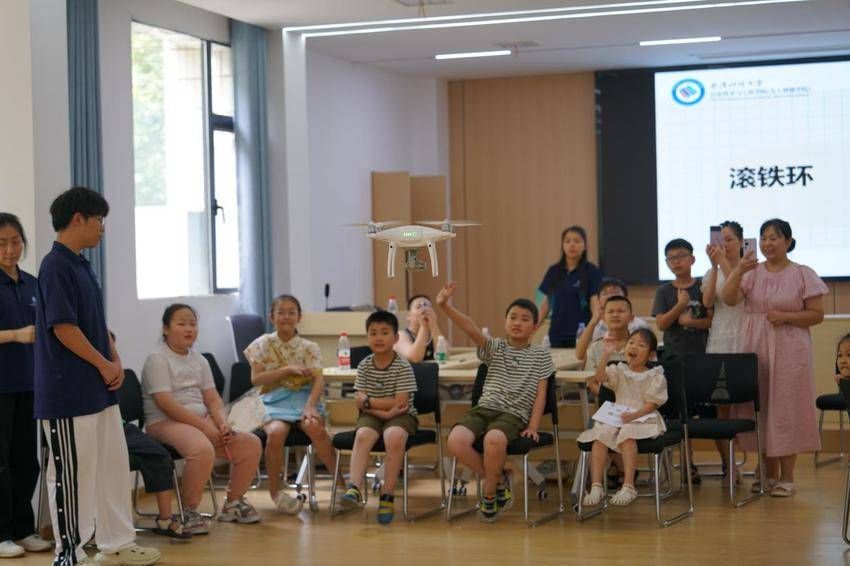 7月11日,实践团开展了以如何使用无人机和眼动仪的原理为主题的科普教育课程。通过直观的科技体验,儿童深切感受到科技发展的无限魅力。实践团成员赵耀航在课程中邀请了几位孩子亲手触摸无人机的外壳,感受那冰凉而坚硬的材质,并指导这些孩子按下遥控器上的按钮。虽然只是简单的升降操作,但那份成就感却让孩子们兴奋不已,脸上洋溢着满足的笑容。“希望有一天,我能遥控着自己设计的无人机,探索世界的每一个角落。”孩子们满怀憧憬地表示。