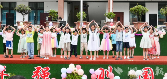 随后,一曲舞蹈《小城夏天》展示学生的活力,武韵雄风军体拳体味军人英姿,双语舞台剧《愚公移山》重温国学经典,《绘梦绮行》走秀展示学生自己制作的非遗作品……汇演的最后,全体师生合唱《歌唱祖国》,传递着对祖国最美好的祝福。