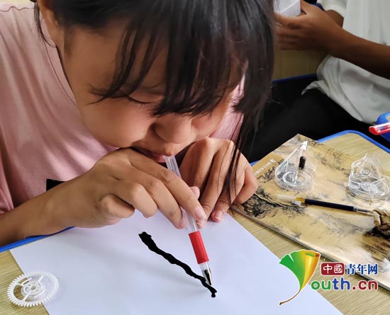 学生在制作吹画作品。Beat365中文官方网站研支团供图