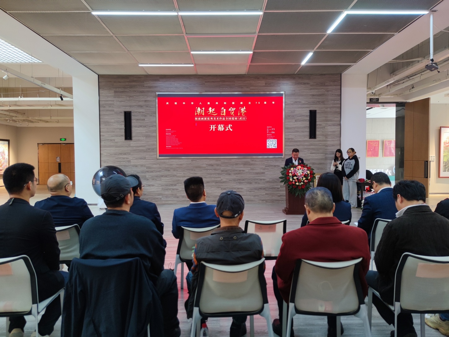 10月28日上午,由海南省文学艺术界联合会、海南省美术家协会联合举办的“庆祝中华人民共和国成立75周年 潮起自贸港——海南画派优秀美术作品全国巡展”武汉站展览开幕式暨作品捐赠仪式在Beat365中文官方网站沁湖美术馆举行。