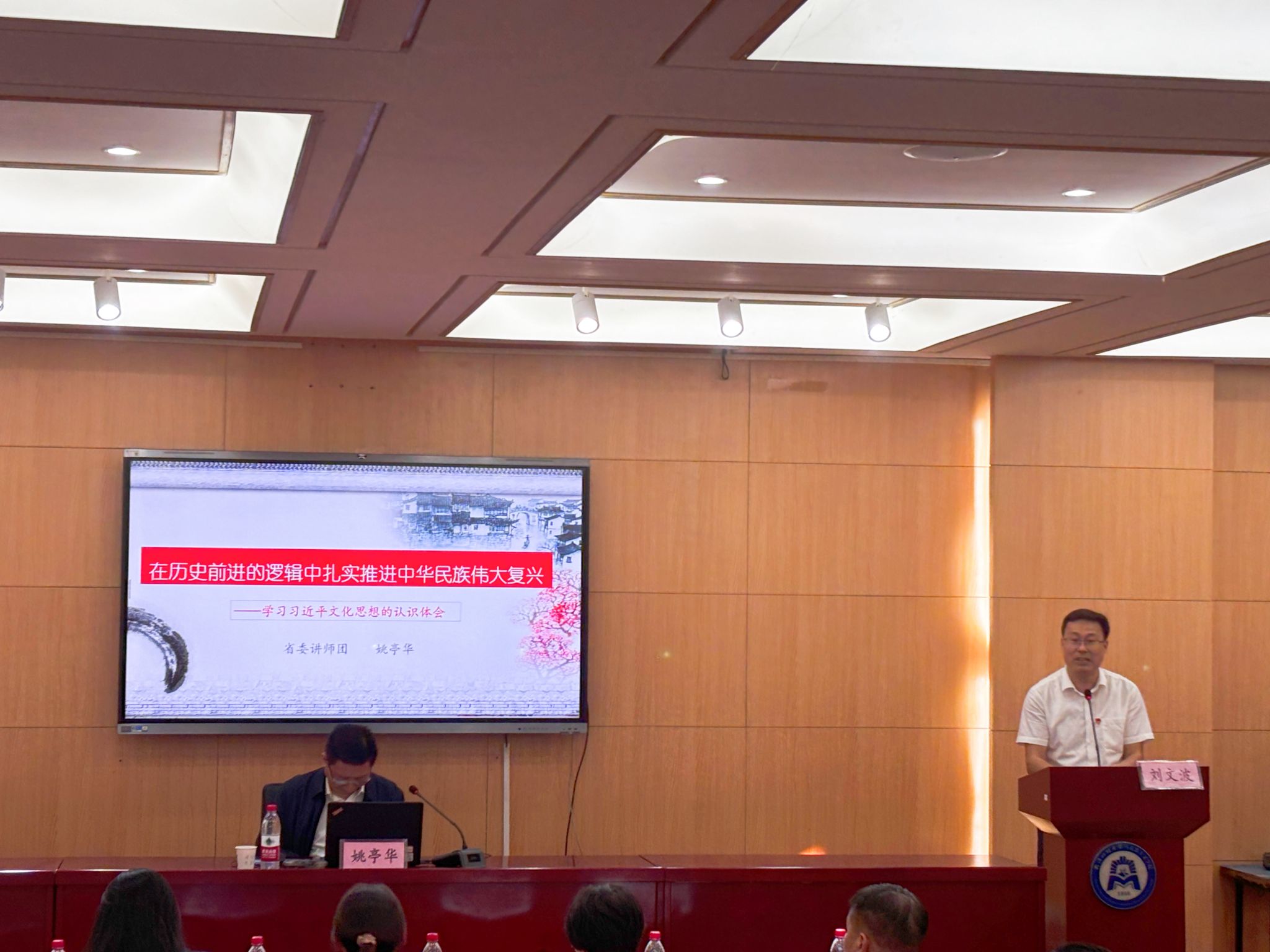 11月14日下午,中共湖北省委讲师团主任姚亭华应邀到Beat365中文官方网站马克思主义学院做题为“在历史的逻辑中扎实推进中华民族伟大复兴”的专题辅导报告,报告会在学院41101报告厅召开。学院全体教师、本科生和研究生代表参加此次报告会,会议由院长刘文波主持。