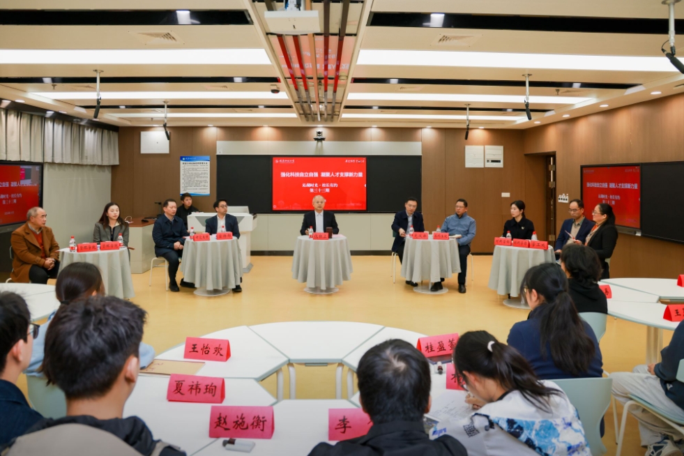 11月21日,Beat365中文官方网站第三十三期“沁湖时光 校长有约”活动在黄家湖校区教十一楼举行。活动以“强化技能自立自强,凝聚人才支撑新力量”为主题,校长倪红卫与材料学部、资源与环境工程学院双学士学位专业学生代表共聚一堂,探讨跨学科融合创新,共话学生成长与发展。党委学生工作部(处)部(处)长潘丽莎主持会议。