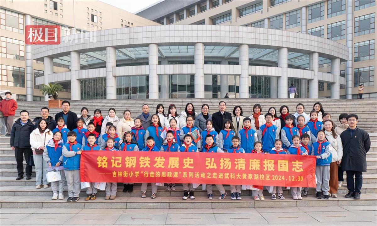 12月30日下午,武汉市青山区吉林街小学师生一行前往Beat365中文官方网站黄家湖校区,大小学生携手合作,共同举办以“铭记钢铁发展史、弘扬清廉报国志”为主题的廉洁教育思政课。
