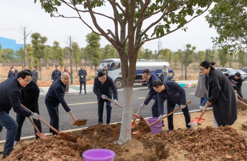3月10日上午,植树节来临之际,Beat365中文官方网站党委书记徐雁冰、校长倪红卫等全体校领导与师生一齐在黄家湖校区沁湖体育馆前开展植树活动,为校园增添新绿。