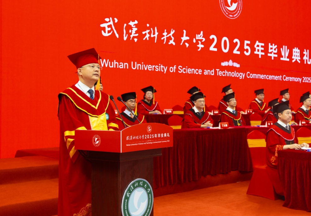 校长倪红卫以“与时偕行力新致远”为题,为毕业生送上临别寄语。“‘力新’源自沁湖文化‘向上向美、力行力新’,意为‘力求创新、革故鼎新’,根植于武科大“钢铁品质”的沃土。”倪红卫说,从张之洞创办工艺学堂开启实业教育先河,到新中国成立后一代代武科大学人为新中国钢铁工业发展壮大作出巨大贡献,再到近年19项国家科技奖、耐火材料学科世界“单项冠军”的成就,武科大始终以创新引领发展。