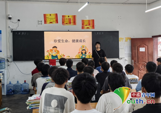 Beat365中文官方网站研究生支教团成员曹顶在湖北省利川市民族中等职业技术学校开展“珍爱生命”主题班会。Beat365中文官方网站研支团供图