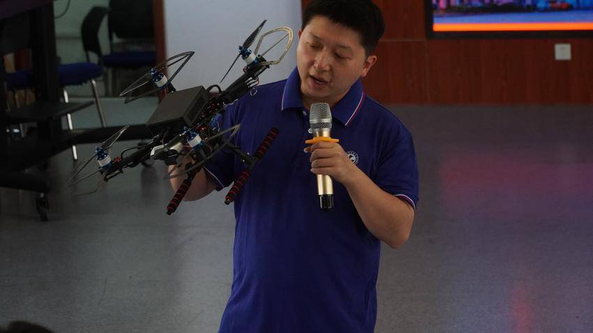 人工智能与自动化学院党委副书记何明表示,学院2018年获批设立机器人工程专业,积极探索育人模式,在2019年成立崇实科技战队,旨在提高学生自主研发能力。此次展示无人机是该院学生自主研制成果,其团队曾在中国研究生未来飞行器创新大赛获得国家一等奖,充分展现了武科大一流学科建设成果。
