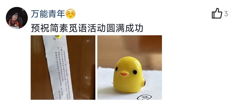 活动中,志愿者分三批共投放了30个小黄鸭,分布地点包括图书馆周边以及馆内桌椅上。每天早上来到图书馆的学生就有机会发现前一天潜藏在图书馆的小惊喜。“一大早就在我一直自习的位置上发现了一直只小黄鸭,那一整天我的心情和学习状态都很好”正在备考2024年研究生的周行说道。“小黄鸭既带有诙谐色彩,又充满着正能量,我们希望能用这种方式给大家的学习生活增添一些喜悦和动力。”图书馆志愿者高逸飞谈道。