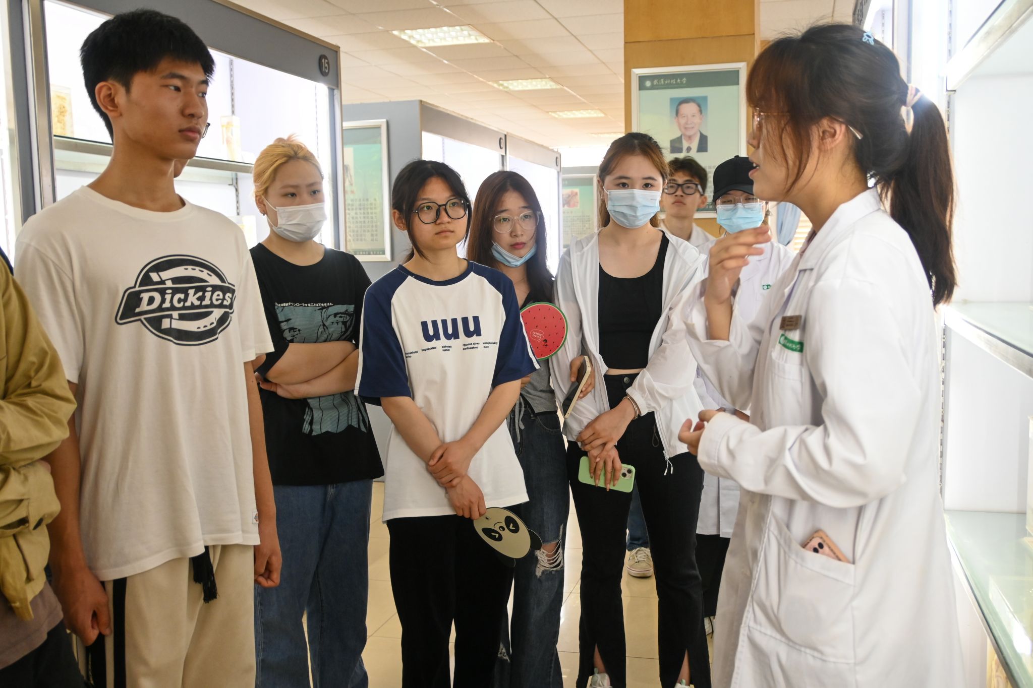 活动负责人黄欣雅介绍,本次开放日活动共分为八个批次,每个批次会有4到5名讲解员带领学生参观标本,讲解员们不仅会依次讲解人体运动系统、神经系统、生殖系统等八大系统的相关知识,还会分享日常生活中的健康常识,以“观看、讲解、互动、分享”的模式完成每场一个半小时的解说。
