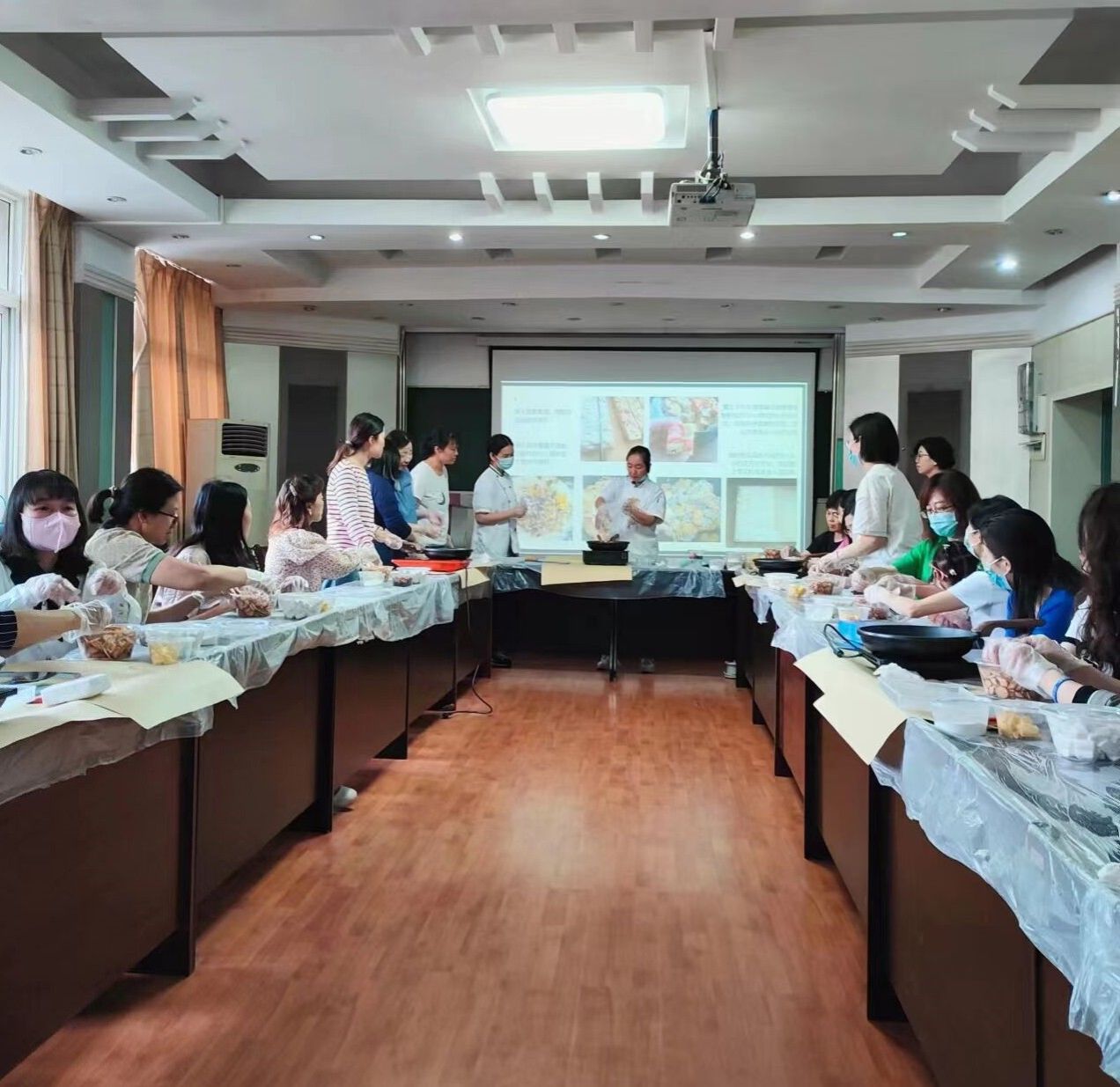 活动伊始,辅导老师讲解雪花酥制作所需的配料,示范如何制作雪花酥,以及制作雪花酥的技巧和注意事项,同时分享了家庭沟通的小技巧。接着,在辅导老师和工作人员的协助下,各位女教职工按步骤开始亲手制作雪花酥。