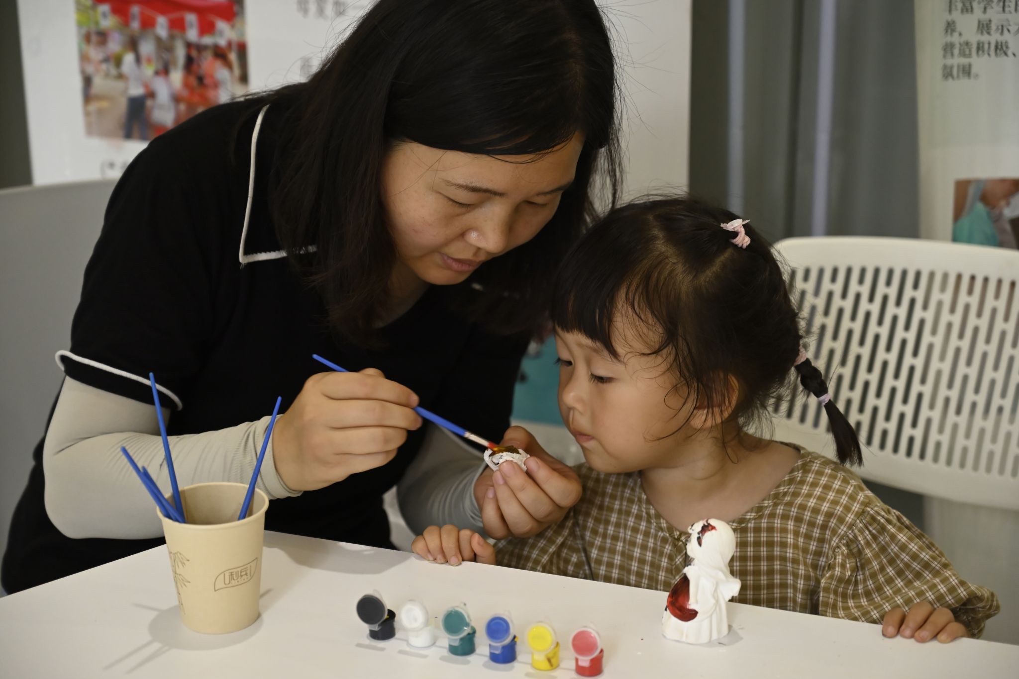 生科院教师杜庆下午没有课,来到中心后与女儿共同完成了石膏娃娃DIY、做陶艺以及画扇子等项目。“很高兴学校能提供给我们这样一个场所,让我们能陪孩子一起体验这些趣味活动,过一个特殊的儿童节,我感受到了学校对我们教职工的关心。”杜庆表示,自己此前就参加过众多学校组织的教职工活动,对这些活动满意度很高。