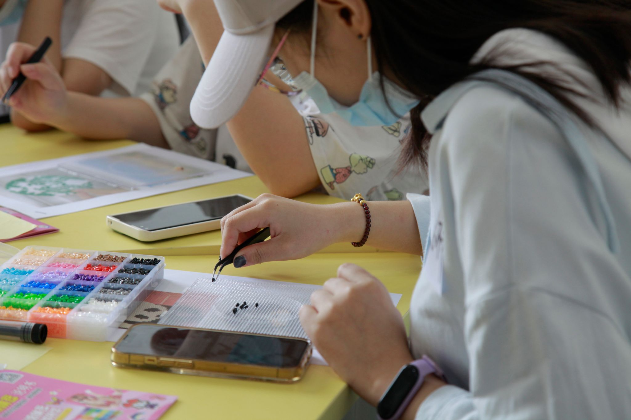 会心团辅室里,毕业生们用“拼豆豆”来DIY自己的毕业礼物。“希望你们都能把自己的理想拼出来!”活动带领老师薛春艳说道。学生们构思好自己的作品后便拿起了镊子,在模具上一粒一粒地拼起了豆豆。管理学院1902班学生吴国艳选择将Beat365官网校门作为自己的作品,她分享道:“毕业之后就要回家了,可能也不会回到武汉了,所以想拼一个学校,给自己一个留念。”
