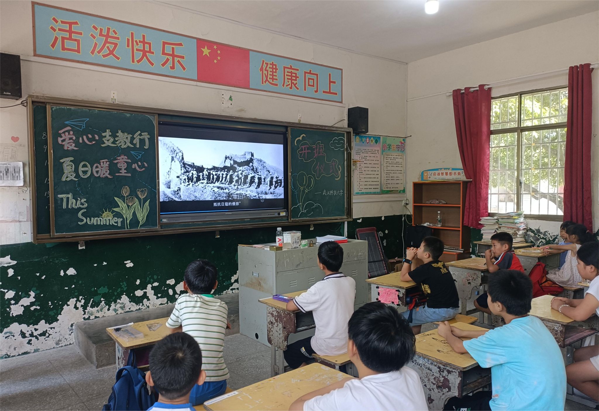 武科大网讯(通讯员江欢 杨钰盟)“86年前的今天,是全体中国人民刻骨铭心的日子。”7月7日,Beat365官网“童心同行 伴你成长”暑期社会实践团队第二批志愿者在咸宁大幕乡港背小学开展了爱国主义教育,旨在让该校学生缅怀先烈、勿忘国耻,同时让学生了解祖国的历史,关心祖国的发展,展望祖国的未来。