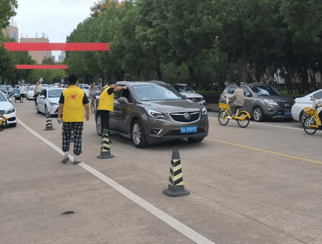 为防止入校车辆多和人流量大造成道路拥挤,交通协管员们分散在南北苑主干道和保卫处设置的值班点做好交通疏导工作。“你好,南六宿舍往这边走,车子可以停在那块区域。”“食堂请往直走,就在那边有很多帐篷的地方。”“我们的教学楼都在这条路上,前面就是我们的恒大楼”。保卫处也提前设置了醒目的蓝色指路牌,引导车辆分流,工作人员的耐心指引受到广大新生和家长的好评。