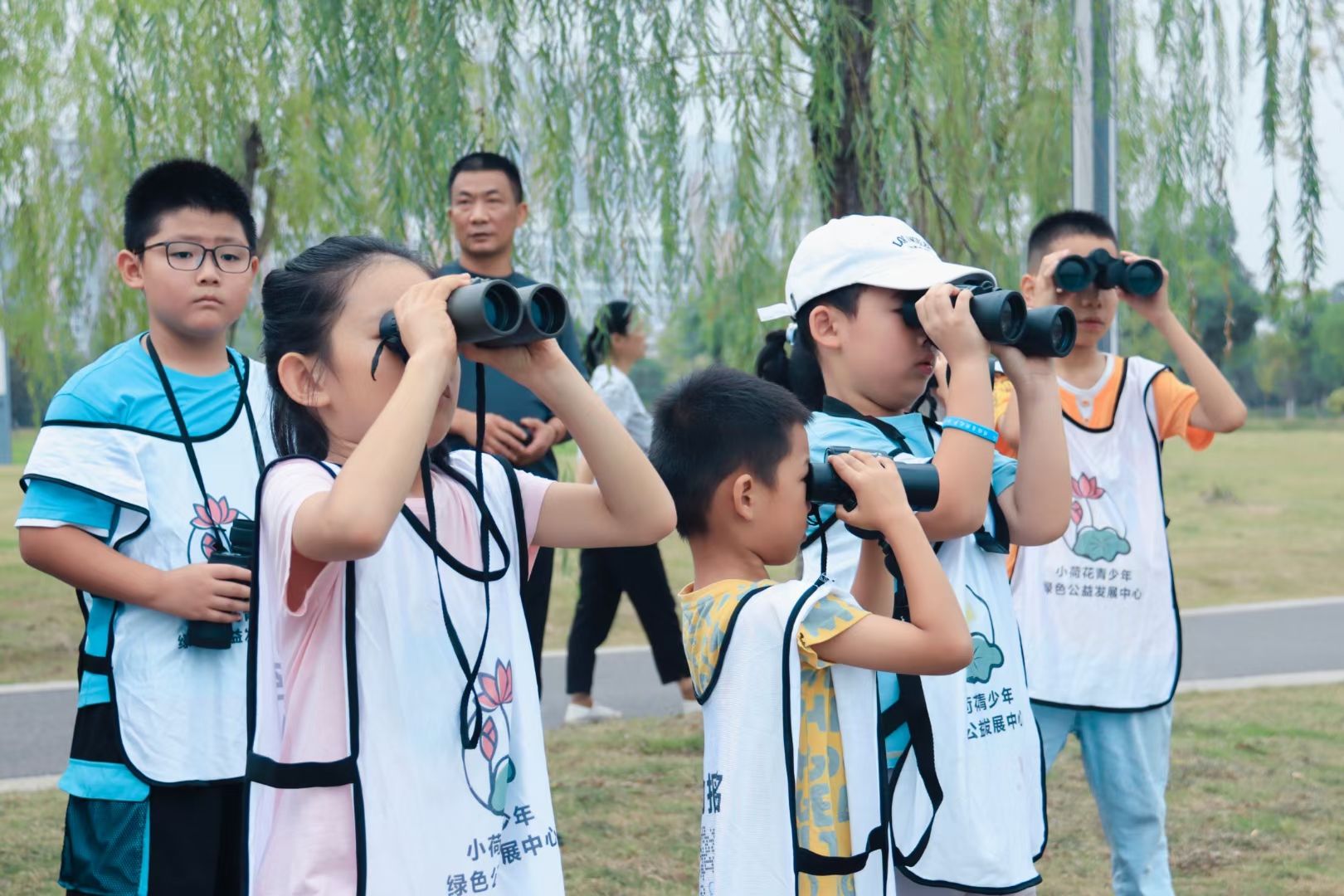 此次活动由江夏区小荷花青少年公益发展中心主办,于湖北省武汉市江夏中央大公园举行,讲解员们事先在公园里制作了一面挂满了湖北省常见鸟种的照片墙,并准备好讲解图以及观鸟工具,“老师老师,我认识这只鸟,这是白鹭,我们五年级第一篇课文学的就是它,它是国家一级保护动物。”活动还未开始,小朋友就积极踊跃地来为大家讲解他们所认识的鸟类。志愿者们为鸟类知识储备丰富的小朋友赠送了定制的“小肥啾”钥匙扣以及手环。