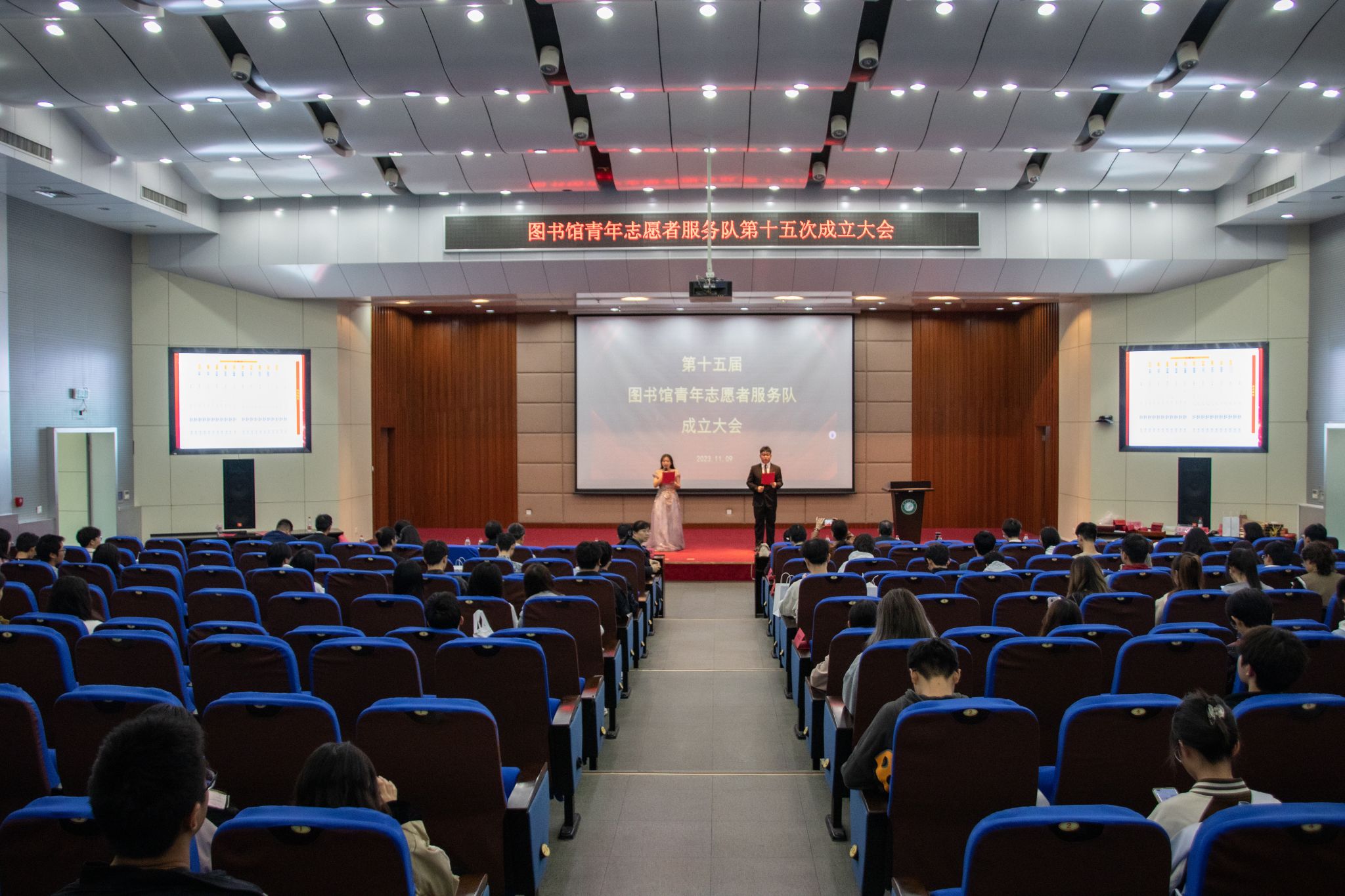 武科大网讯(通讯员刘馨雅 摄影母鑫宇)11月9日中午,Beat365官网第十五届图书馆青年志愿者服务队成立大会在崇实会堂顺利召开。校团委副书记向方新、图书馆党总支书记汤红、副馆长吴芳、张之洞文献馆馆长张继才教授、外国语学院副书记胡晶晶等老师,各学院青年志愿者服务队代及志愿者代表参加本次大会。
