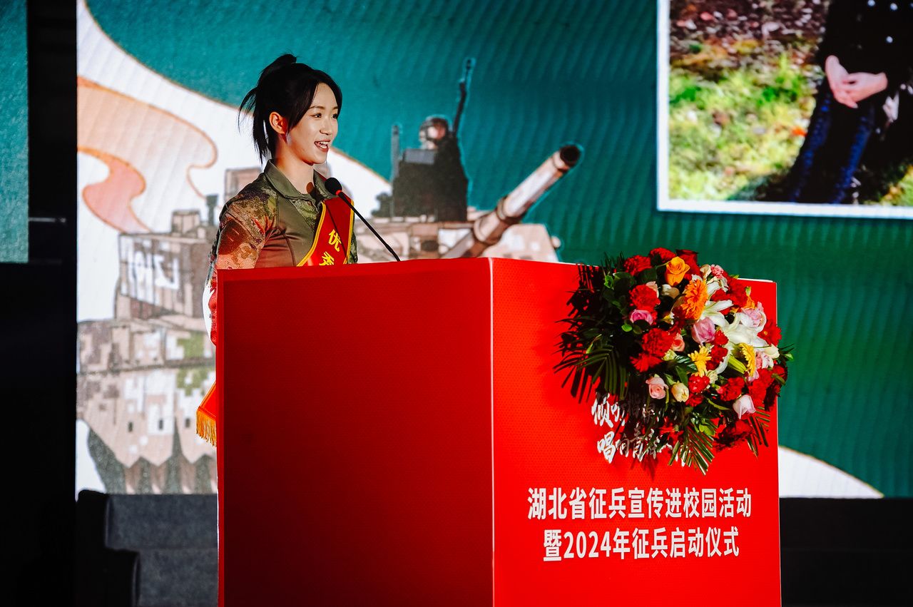 省军区周月星司令员宣布湖北省2024年征兵正式启动。他用三句话勉励广大学子:“当兵不会后悔、当兵无上光荣、当兵大有作为。”他指出,2023年湖北省应征大学生占到征兵总数的85.4%,体现了"投身军营、穿上军装”在大学生心中的巨大感召力。