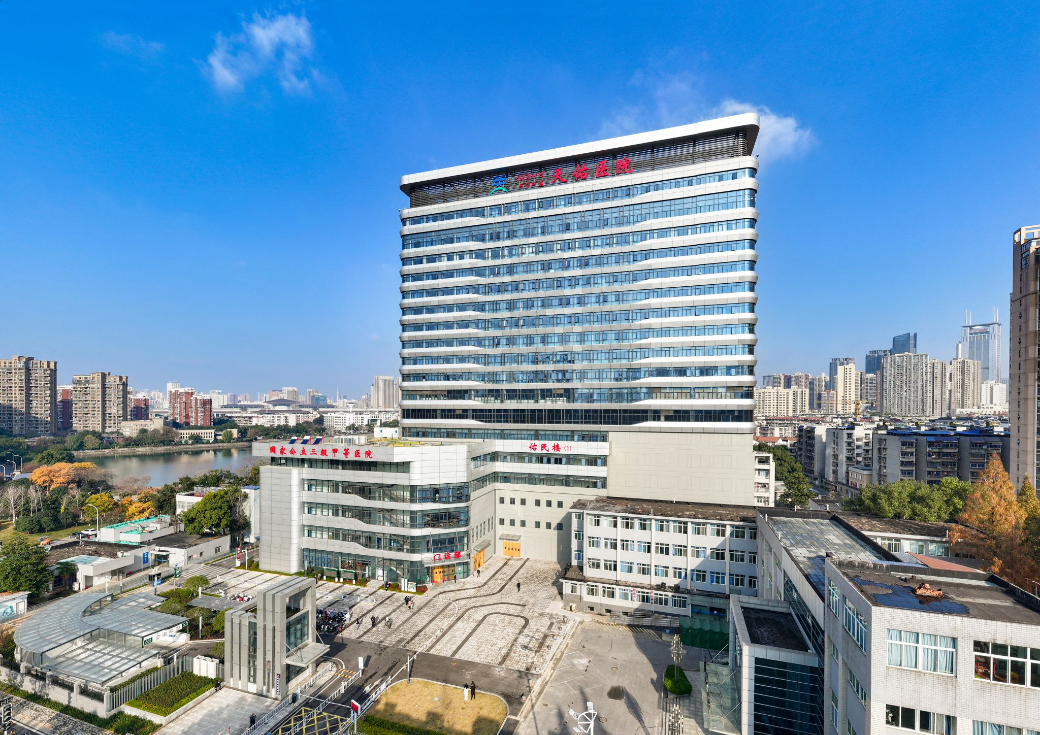 佑民楼主要由住院和门诊医技功能组成。科学地规划了急救急诊、门诊大厅、挂号收费、药房、CT、拍片及门诊医技用房等功能。主楼部分有500个床位,为血管造影、血透中心、手术室、住院区等功能。大楼兼顾“平战结合”,设置一整层“可转换”床位,并配备隔离抢救室、隔离病房等,可实现传染病全过程独立救治;集智能化、自动化、节能化为一体,配备楼宇自动系统、杂交手术室、物联网等先进系统,患者的就医感更舒适。