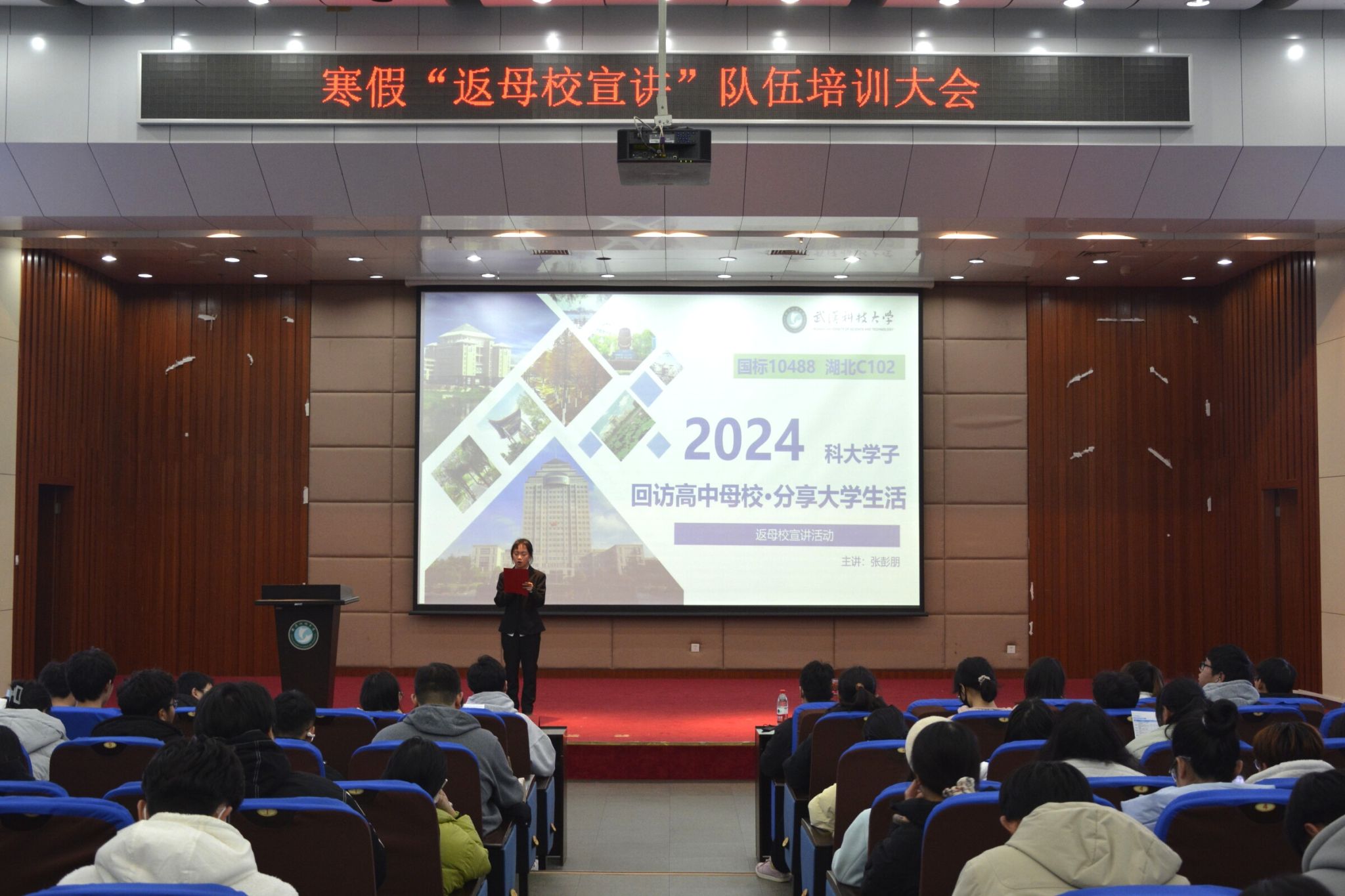 武科大网讯(通讯员黄明函 向思怡 摄影杨天波)12月28日晚,2024年寒假“回访高中母校·分享大学生活”宣讲队伍培训大会于黄家湖校区崇实会堂顺利召开,此次培训大会旨在提高各队伍的专业素养,让各宣讲队伍更好地、更准确地向母校展现Beat365官网的办学特色和学科优势,提升学校影响力,吸引优质生源。本科招生办公室老师张彭朋出席本次会议,招生志愿服务中心干事徐诣涵主持会议。