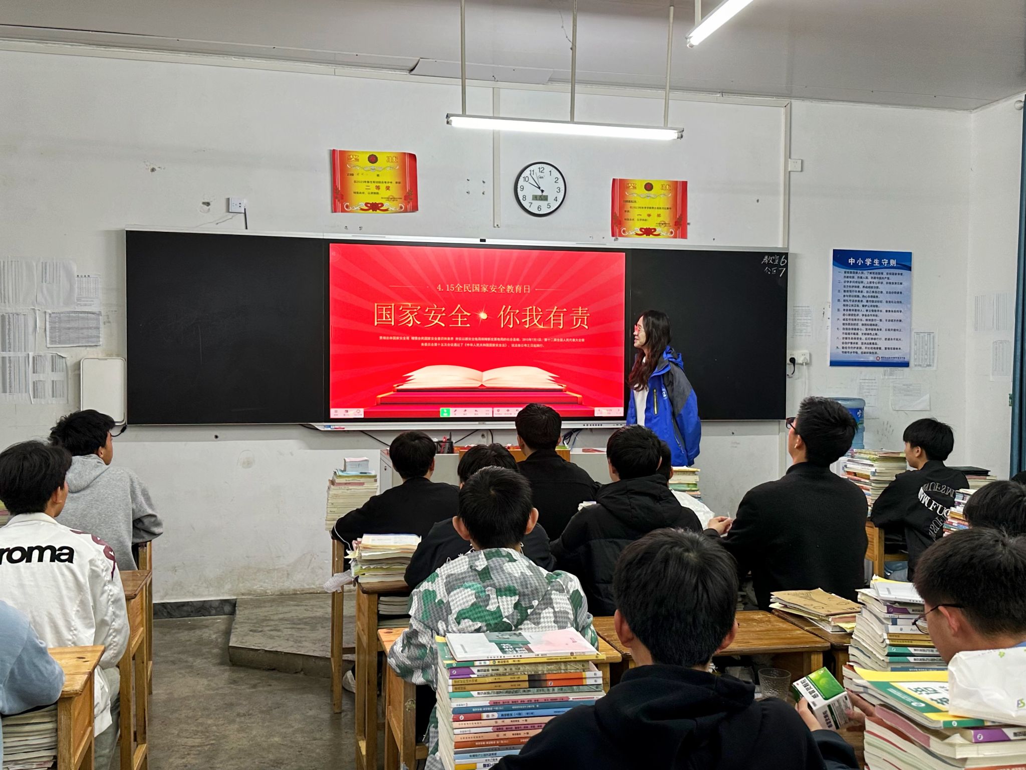 此外,研支团成员还配合学校采取多种措施营造国家安全教育氛围,通过张贴国家安全教育海报、利用广播站宣传及国旗下讲话等方式,让广大师生在日常生活和学习中不断接受国家安全教育的熏陶。