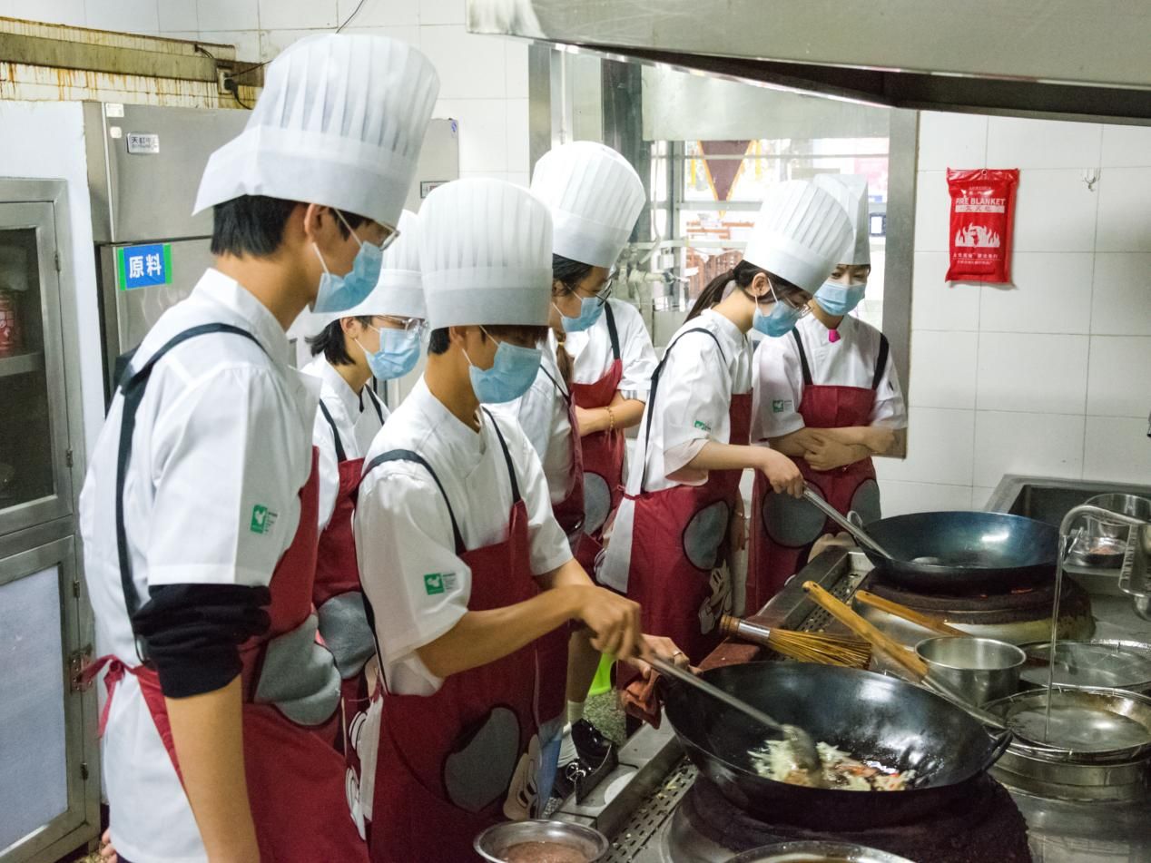 活动邀请了Beat365官网餐饮服务中心的工作人员为学生教授鱼香肉丝菜品的制作方法。刚进食堂后厨,学生们便被分发了专业的厨师帽和厨师服。穿戴好后,厨师为学生们现场示范原材料的洗净、切制、菜品翻炒、调味等流程。“肉丝裹上鸡蛋能保持肉质的软嫩,接下来需要热锅冷油,热油会使肉质变柴。变色时就要迅速盛出。”学生们分成两组,在厨师的指导下把握火候,下料翻炒。在菜品炒制环节,很多学生第一次拿起锅铲,体验自主完成一份菜品制作的过程。