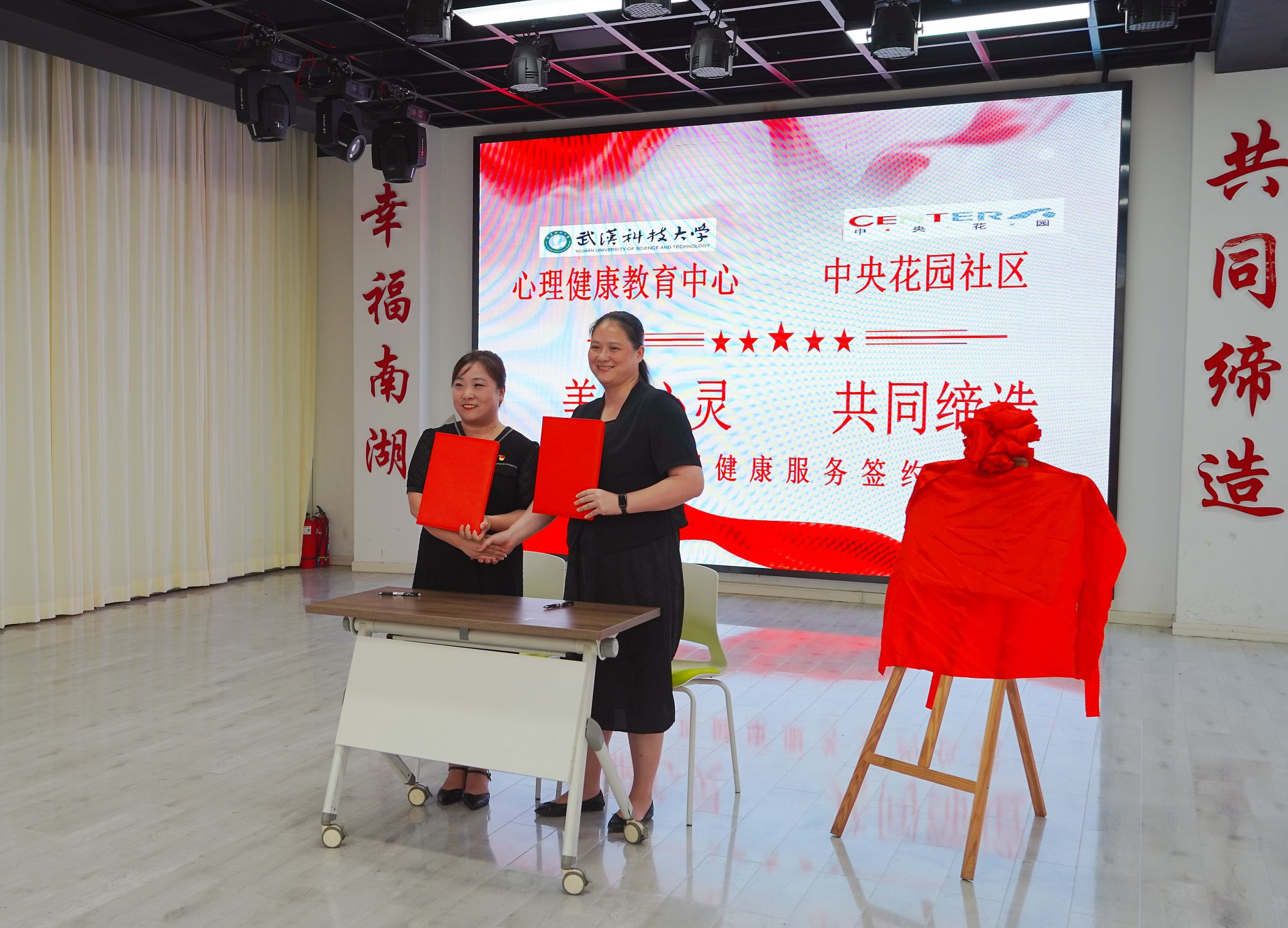 潘丽莎与吴垚共同签约社区心理健康服务合作意向书,并为Beat365中文官方网站社区心理健康服务基地揭牌,这标志着Beat365中文官方网站心理健康教育中心在武汉市的第一个社区心理健康服务基地正式成立。基地是学校携手社区,推动心理健康工作服务一线、服务社区居民的深度实践,更是校地共建,充分发挥人才和平台优势,合力推进乡社区嵌入式服务的重要举措。