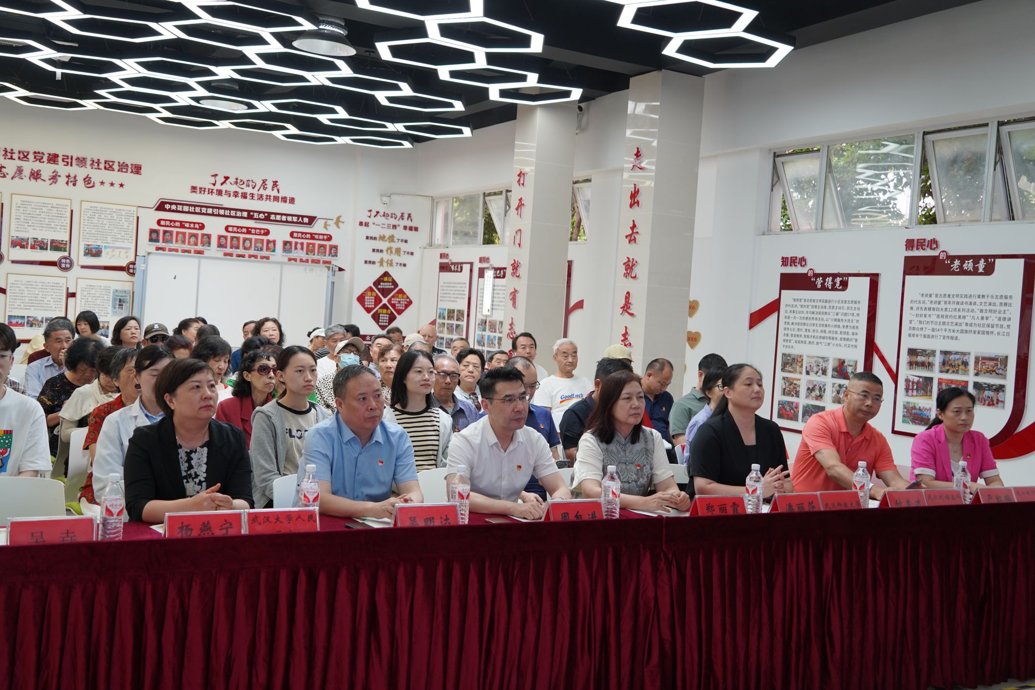 校党委学生工作部部长潘丽莎、南湖街道党工委书记郑丽霞、人大南湖街道工委主任周自进、中央花园社区党支部书记吴垚等出席仪式,中央花园社区党支部副书记汤艳主持仪式。