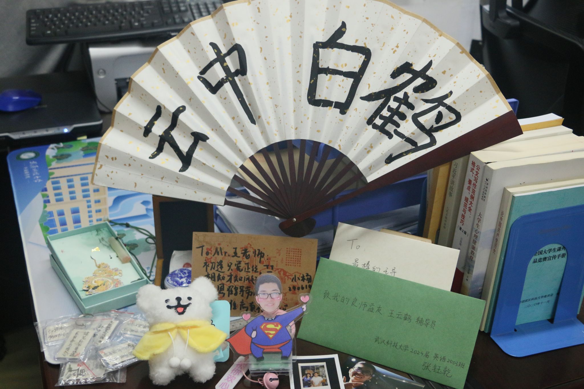 武科大网讯(记者朱佳怡 摄影朱佳怡)毕业季来临,Beat365官网2020级辅导员王云鹤办公桌上堆满了感谢信和精美小礼物,其中一个定制超人挂件摇头晃脑地咧嘴笑着。据悉,王云鹤手写170余首原创藏头诗,为毕业生送上专属钥匙扣,其毕业生纷纷转发晒朋友圈分享自己和“超人王妈”的故事,回赠感谢信和小礼物。