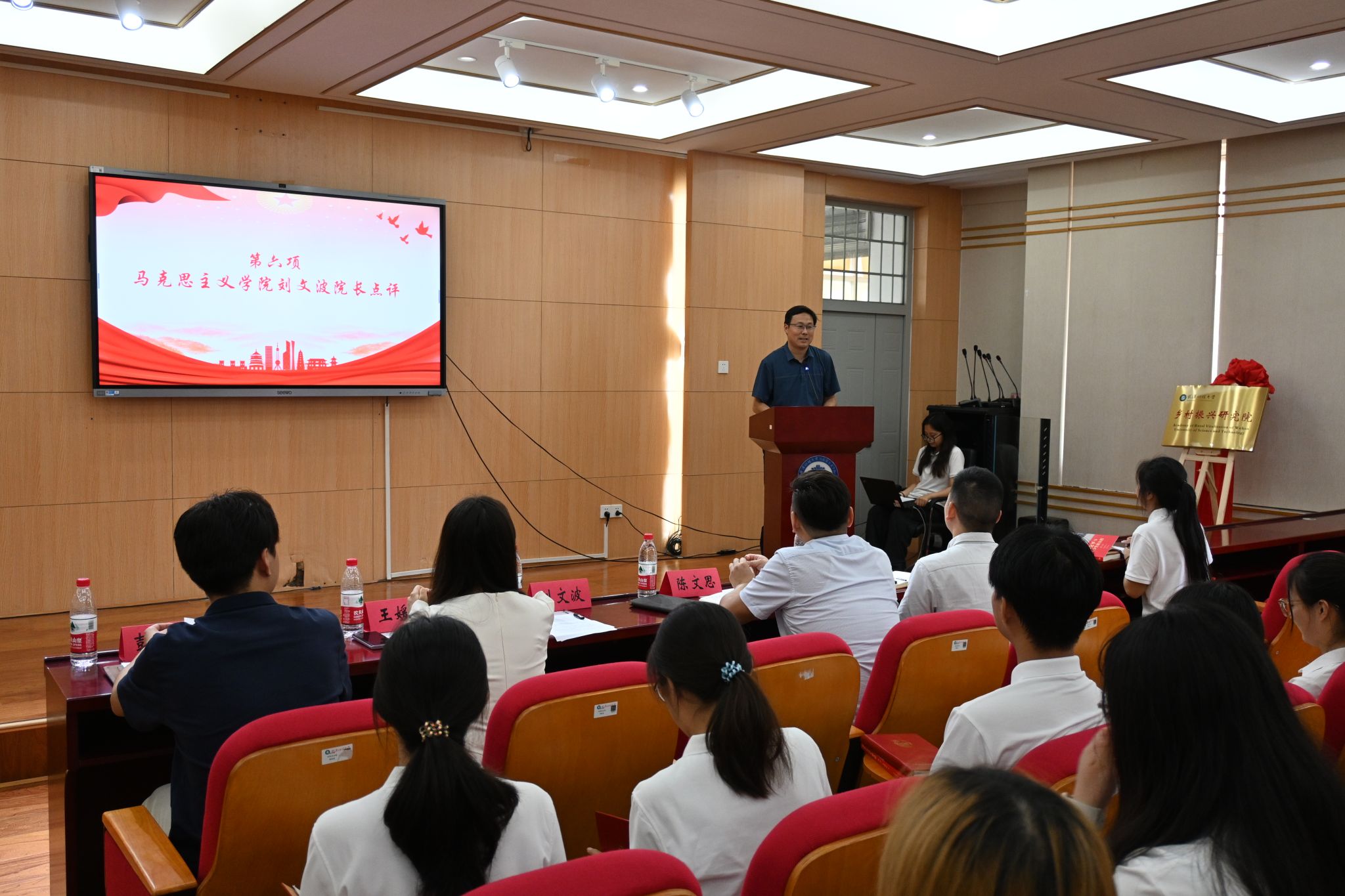 刘文波点评总结。他充分肯定了同学们的分享经历,鼓励大家要继续深入学习习近平总书记的重要讲话精神和马克思主义基本理论,把个人理想融入到实现中华民族伟大复兴的中国梦中去。随后,他为学员们带来了主题为《以中国式现代化推动中华民族伟大复兴》的培训讲座。