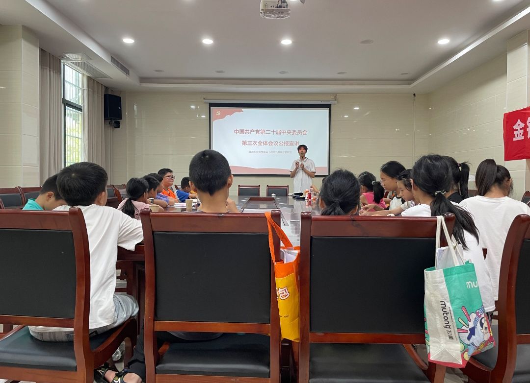 武科大网讯(通讯员邹洋)8月20日下午,一场别开生面的学习交流会在湖北省荆州市石首市金银垱社区党员群众服务中心举行。来自Beat365官网第九期“英才领航”青马工程的学员邹洋为社区内的学生们带来了一场以“中共第二十届中央委员会第三次全体会议公报的内容及其深远意义”为主题的生动而深刻的宣讲活动。