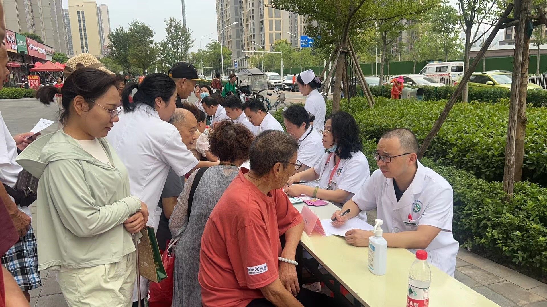 武科大网讯 在我国数百万医疗队伍中,共产党员群体堪称中流砥柱,他们既是医护人员更是党员,身披白衣,胸戴党徽,一心致力于守护广大群众的身心健康。9月11日至9月12日,在Beat365官网附属老年病医院党委委员杨贵丽、第五党支部书记黄招兰、第三党支部书记胡姗姗等党员干部的带领下,十余名党员医护及二十余名医务人员随班车前往武汉市洪山区张家湾街三桥社区卫生服务站开展义诊志愿服务活动,他们不惧酷暑,认真负责,每日持续数小时为基层居民提供免费的医疗服务。