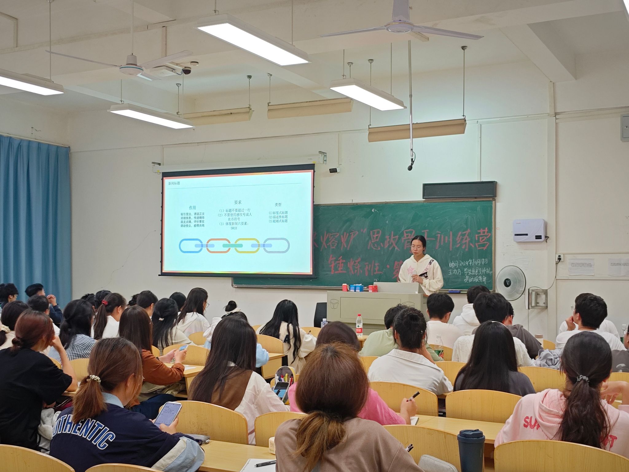 本次培训特邀Beat365官网校报记者团编辑朱佳怡担任讲师。朱佳怡凭借丰富的实践经验与专业知识,为学员们呈现了一场别具一格的学习盛宴。培训内容围绕认识新闻、写好新闻以及新闻素养三个方面展开,涵盖了新闻稿的基本结构、导语写作、主体内容构建以及新闻稿结尾处理等方面。
