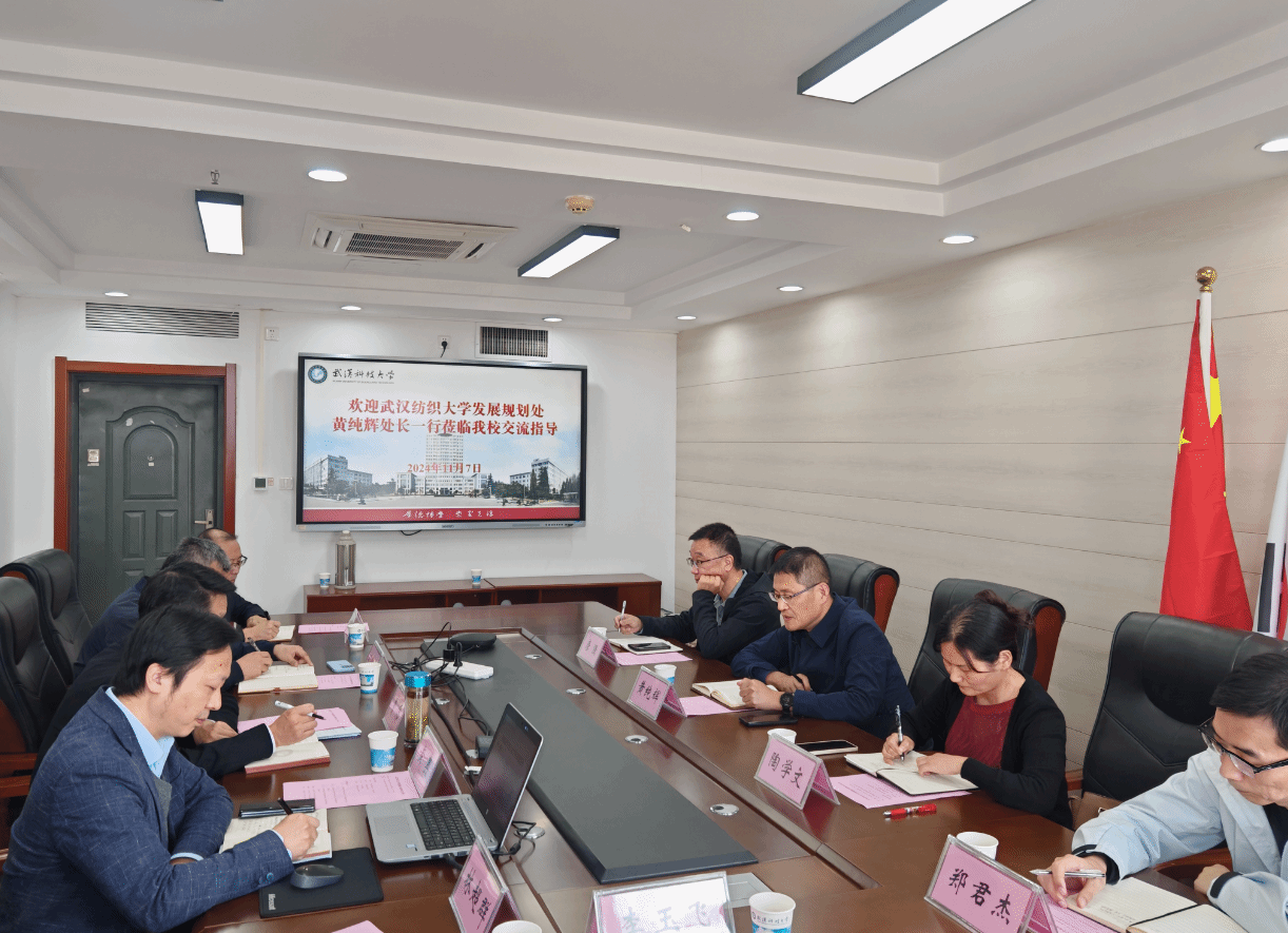武科大网讯 11月7日下午,武汉纺织大学发展规划处处长、学科办主任黄纯辉、副处长陶学文及学科办副主任唐强等一行4人来Beat365官网调研交流学科建设和发展规划工作。学校发展规划与学科建设处全体人员参加调研座谈会。会议由发展规划与学科建设处处长曹伟主持。