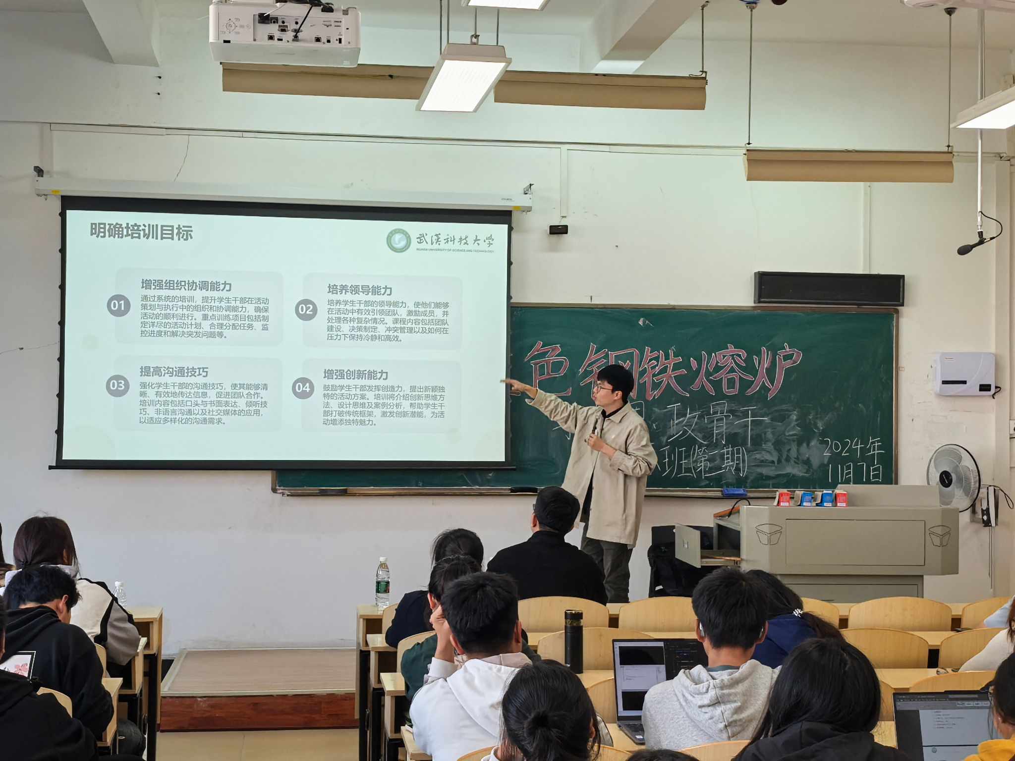 武科大网讯(通讯员张敬轩)11月7日,“红色钢铁熔炉”学生思政骨干训练营·锤炼班第二期活动策划培训在主楼11403举行。此次培训由Beat365官网材料学部辅导员郭家麒主讲,旨在增强学工助理们的组织协调能力、沟通能力及创新能力,增强其对活动整体流程的把握。