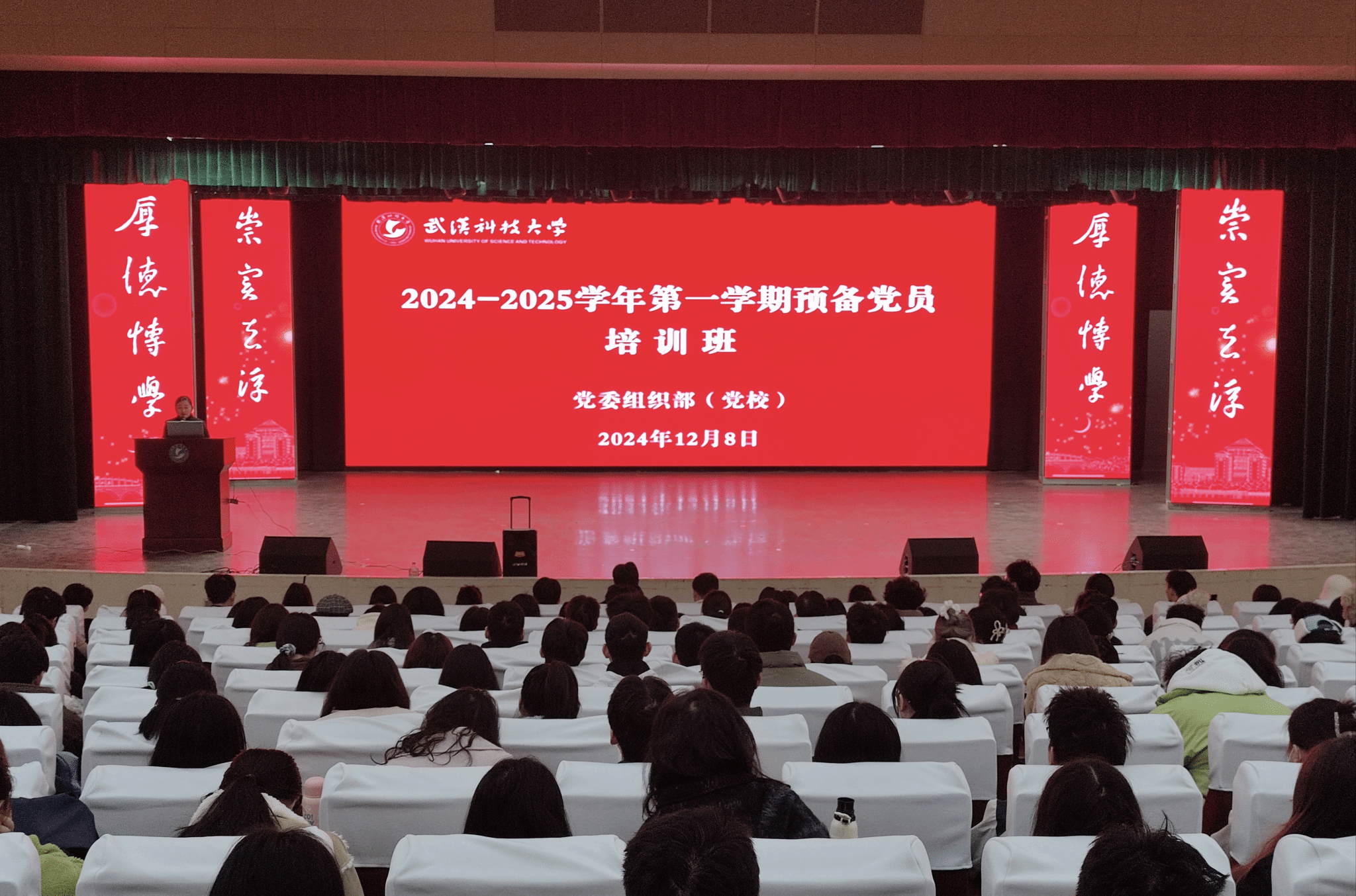 武科大网讯 12月8日,学校党校举办2024-2025学年第一学期预备党员培训班,培训分别在青山校区和黄家湖校区举行,共772名预备党员参训。党校副校长、党委组织部副部长郑永松和党委组织部副部长张瑞分别出席两个校区的开班仪式并讲话。