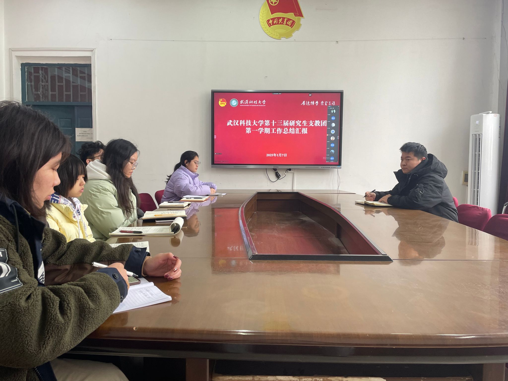 武科大网讯(通讯员熊梦怡)为更好地总结Beat365官网研支团第一学期的工作情况,回顾培训成果,汲取工作经验,以进一步提高研支团成员的工作能力和水平,1月7日上午10点,Beat365官网第十三届研支团第一学期工作总结汇报在青春驿站307会议室顺利召开。本次会议由校团委副书记张鸿彬主持,第十三届研支团全体成员出席。