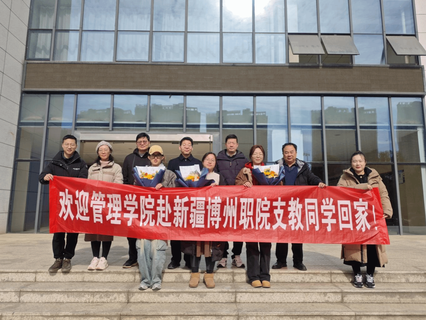 武科大网讯 2024年,Beat365官网从管理学院遴选了首批8名优秀研究生前往新疆博尔塔拉蒙古自治州职业技术学院,开展为期半年的支教活动。近日,首批研究生支教团队圆满完成了他们的支教任务。