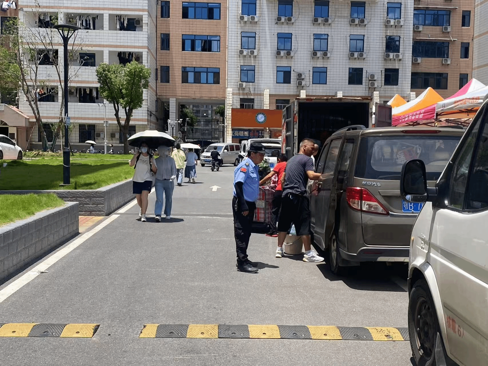 整个搬迁过程秩序良好,未发生任何安全事故。学生普遍反映:“看到保安人员忙碌的身影,感觉特别安心。他们不仅指挥车辆、维持秩序,还主动帮我们搬运行李,衣服全都湿透了,很温暖,特别感动!”