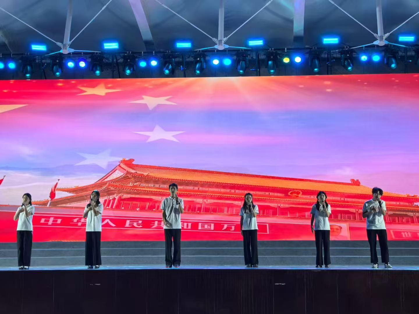 晚会在热烈的氛围中拉开帷幕。当支教团的老师们身着统一的研支团服装登上舞台时,现场顿时响起阵阵掌声。伴随着悠扬的旋律,研支团成员用饱满深情的嗓音唱响《有我》,“前往皓月星辰,初心不忘”的歌词在夜空中回荡,传递着温暖而坚定的力量。