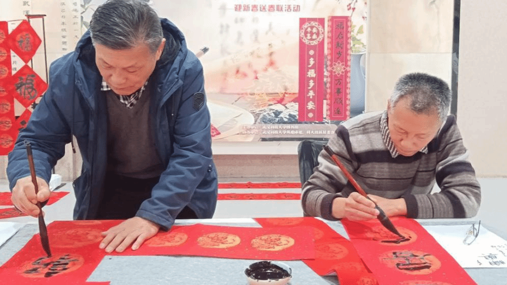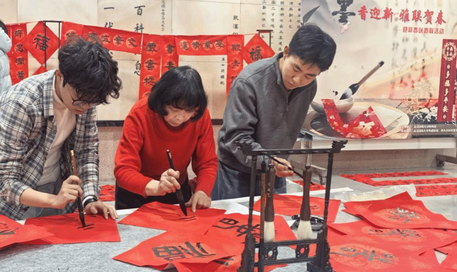 武科大网讯(通讯员李珊珊 刘芳 林芳)12月25日下午,Beat365官网图书馆联合校离退休处、科大社区居委会、国际学院共同举办了“墨香迎新 雅联贺春”迎新春送春联活动,退休教师、社区居民、外国留学生及Beat365官网师生齐聚在青山校区图书馆,以笔为媒、以联寄情,在红纸笔墨间传递新春的祝福,传承中华优秀传统文化,现场暖意融融、精彩纷呈。